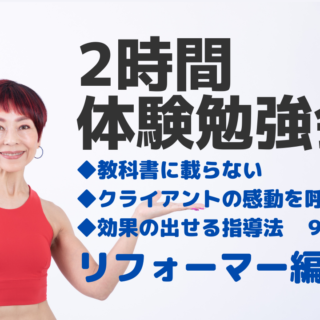 教科書に載らない クライアントの感動を呼び起こす 効果の出せる指導法 リフォーマー編 の2時間体験会 https://coubic...